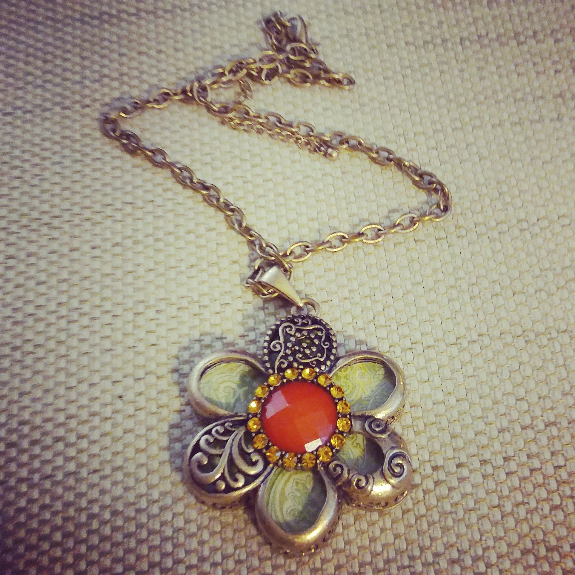 I ended up settling on the dress she’d brought over. The orange went great with the outdoor setting (lots of green). Truly, a green dress would have been too much. And then… the necklace. Oh, this necklace. Isn’t it the most fun? I loved it.