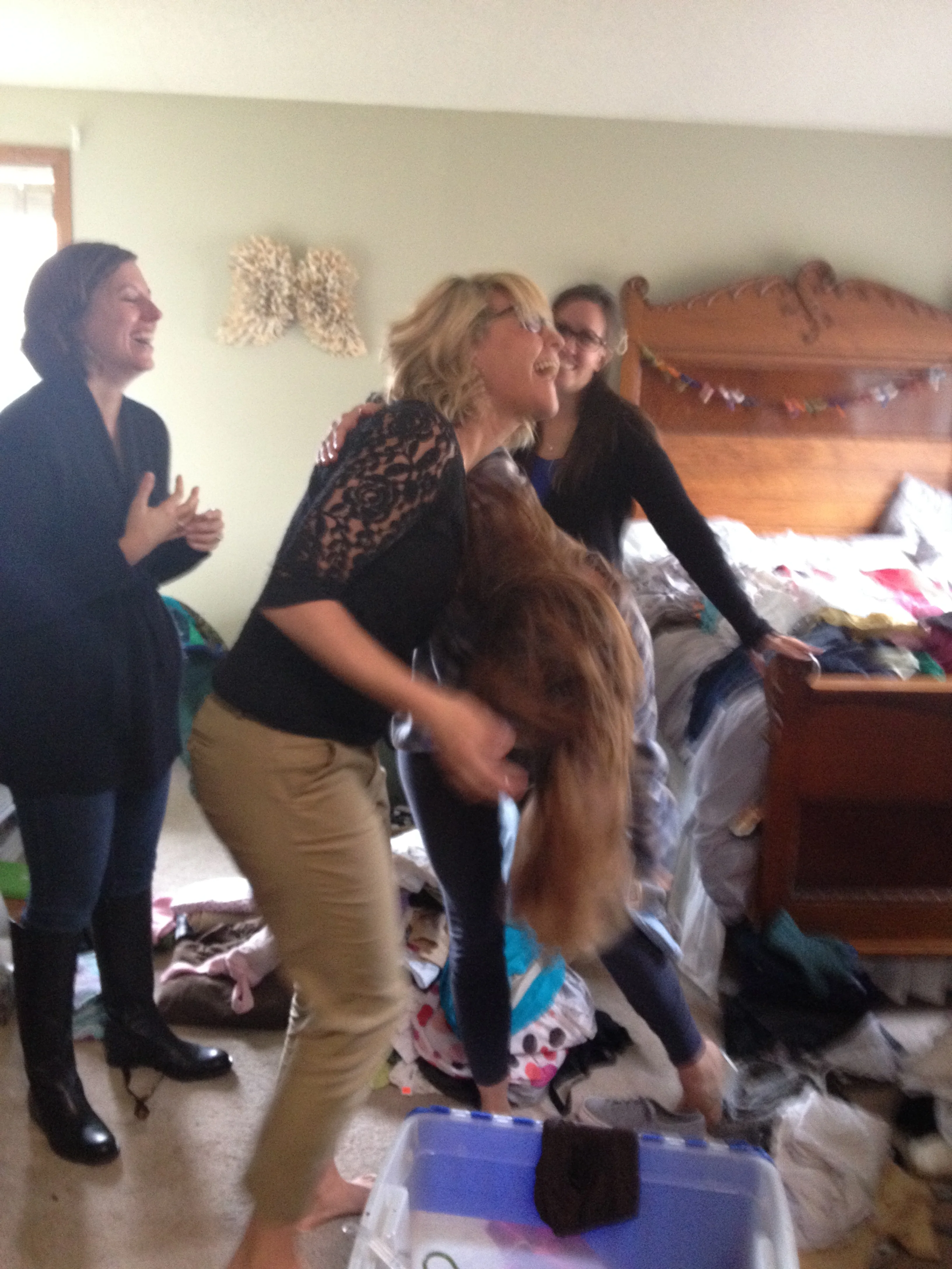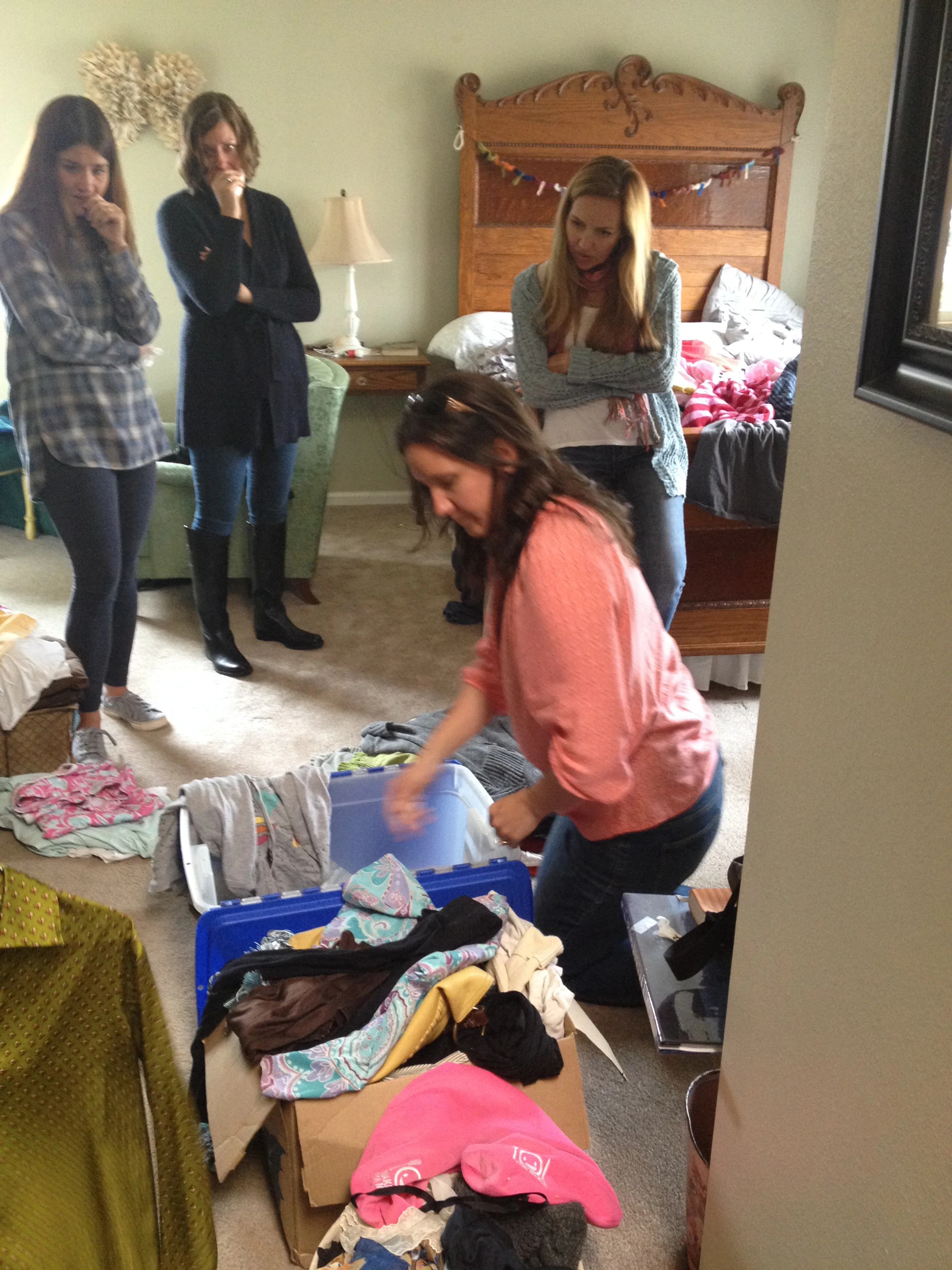 And yet, we just stood in a circle. Talking about each item, remembering when or where she wore it. The shirt, the dress, the pajamas. Finally, we started picking up an item, deciding who we thought should have it, then forcing it on that person.