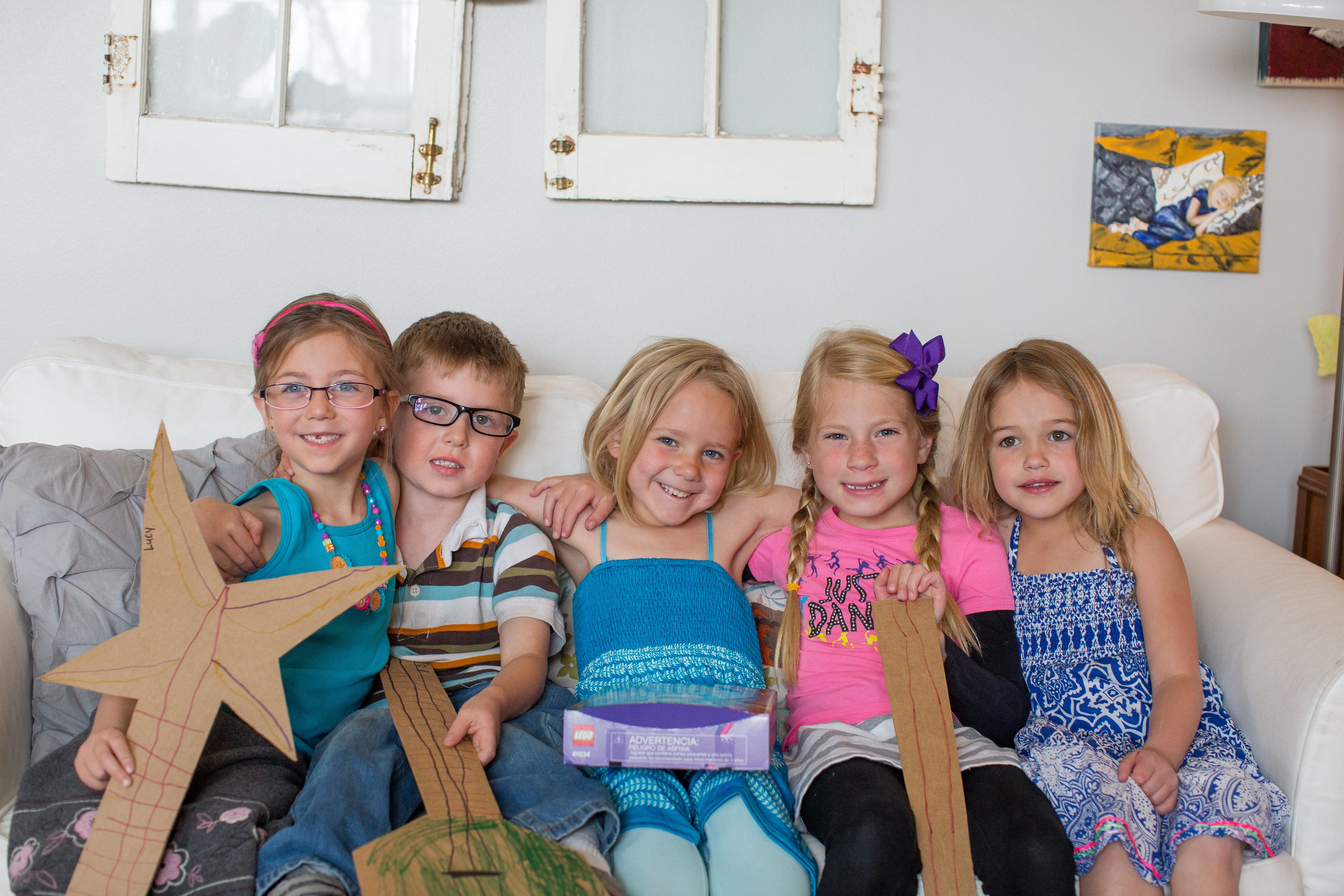 Last weekend we had our first major “first” without Kara: Story turned 6. She wanted a few friends and a Rock Star Birthday Party. No games—just a 6-year old hangout party. So that is what we did. Harper and a friend made all the decorations. I asked a neighbor, “What snacks do rock stars eat?” Her reply, “Laxatives and celery.” We opted to stray from the theme a bit for better snacks. Mickey made the cake according to Story’s specifications—lemon cake with lemon frosting and eyeballs.